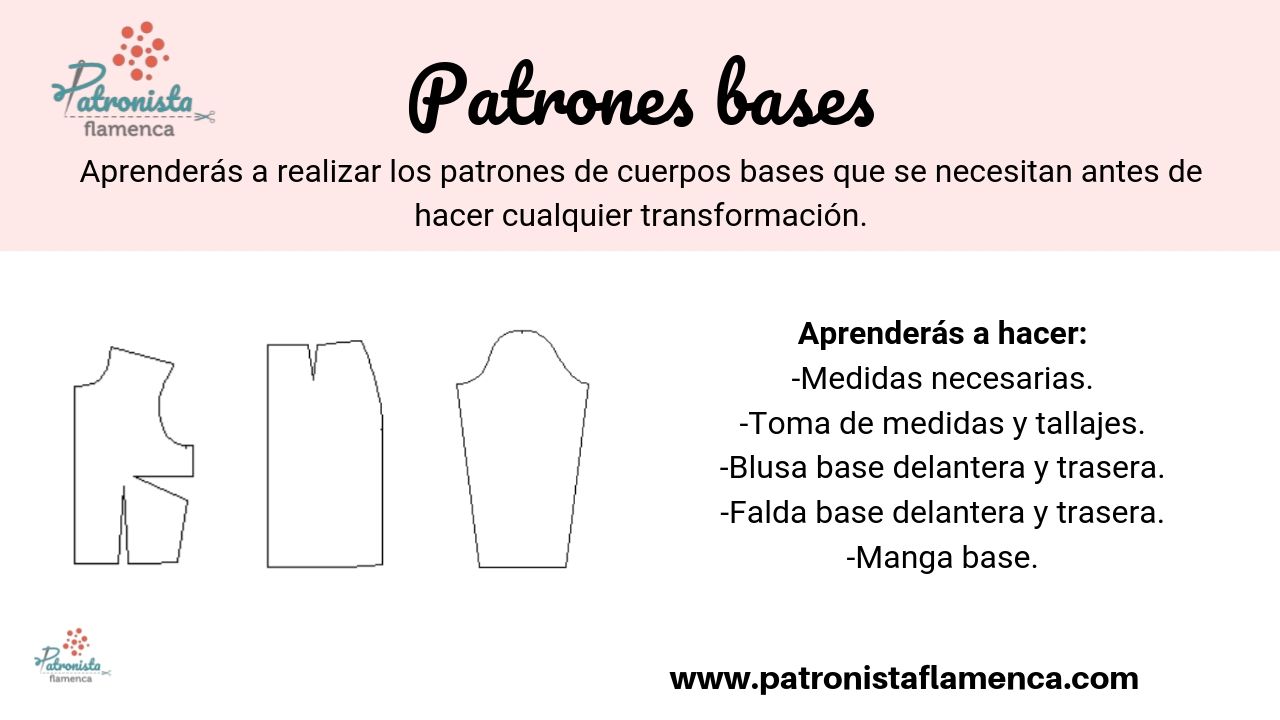 En este curso aprenderás a realizar los patrones bases de blusa delantera y trasera, falda delantera y trasera y manga base.