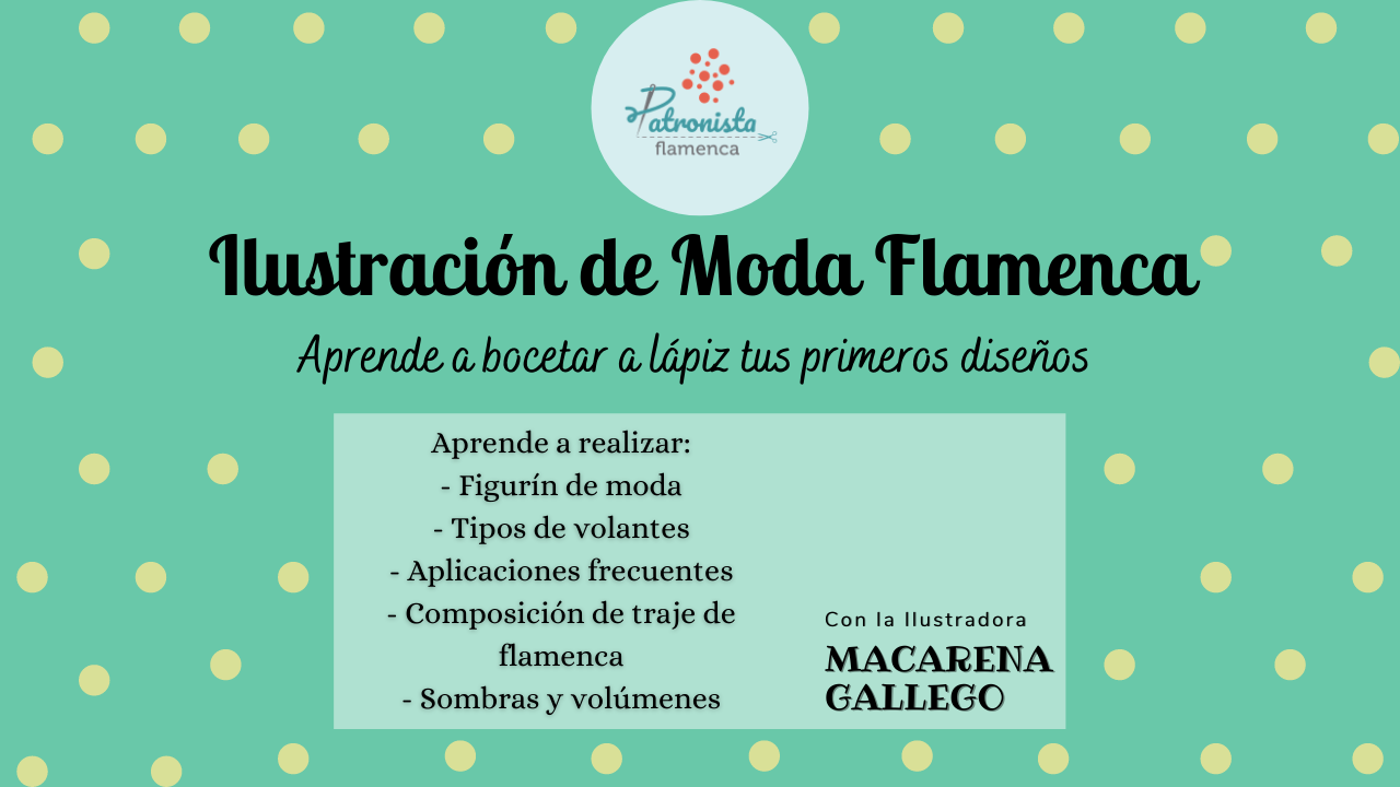 El curso lo realiza la ilustradora Macarena Gallego, profesora del curso semipresencial de Diseñador de Moda Flamenca que realizamos cada año.