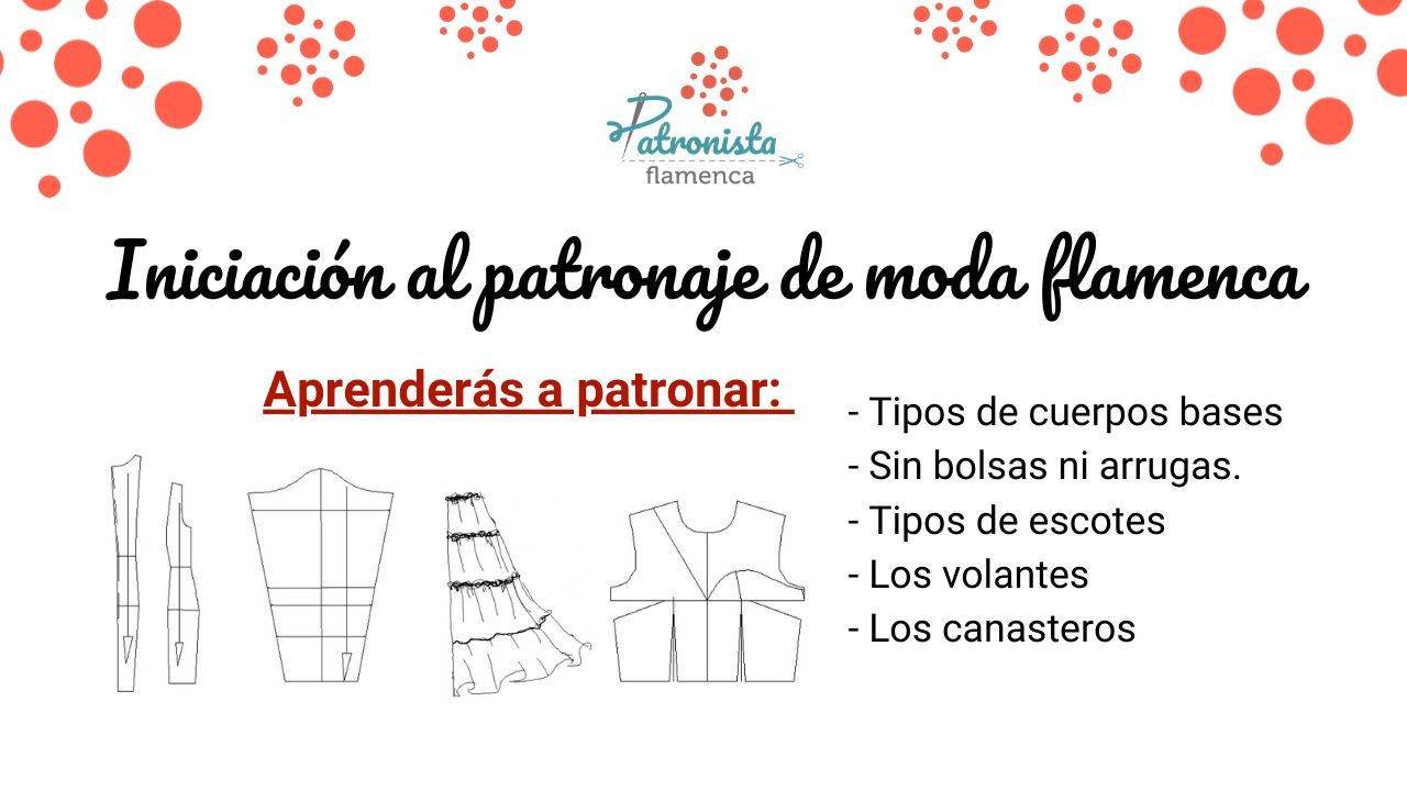 Este temario es el básico para empezar a patronar y confeccionar moda flamenca. Recuerda que la moda flamenca es una especialidad de la creación de moda, por tanto debes tener algunas nociones básica de patronaje y costura para que no te resulte complicado.