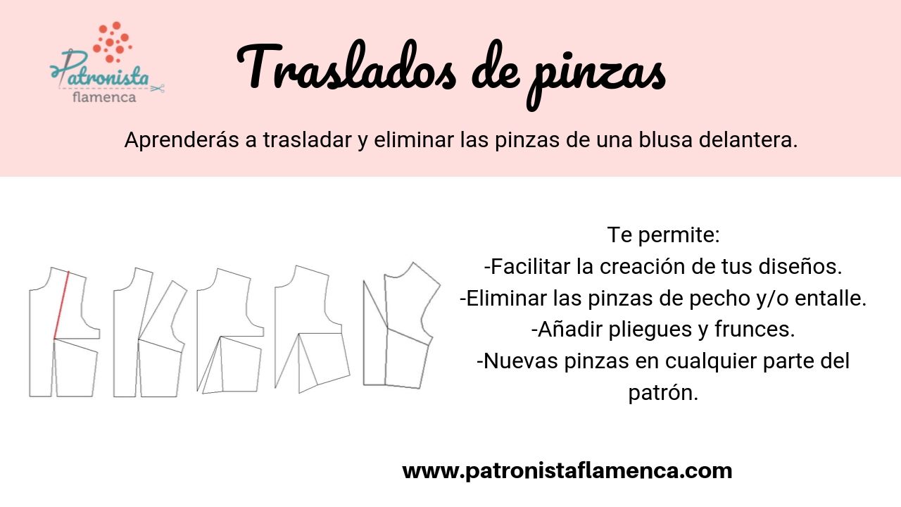 Hacemos estos traslados sobre todo por estética o para crear pliegues, frunces o costuras decorativas. Os recuerdo que las pinzas son necesarias para la forma del pecho, debemos trasladarla, pero no eliminarlas ya que dan la forma al pecho.